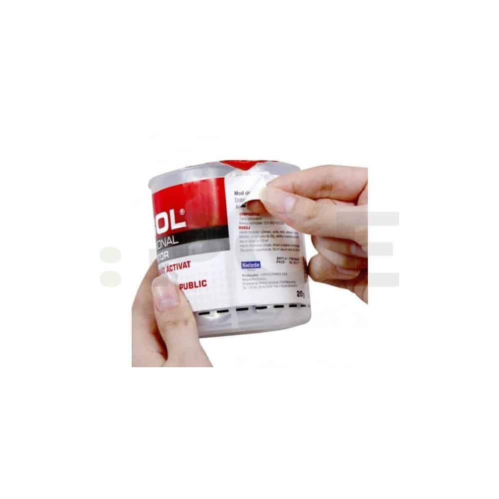 - Aktivácia: Odtrhnite hliníkový obal z plechovky a plechovku položte červenou stranou nahor do kelímku s vodou.